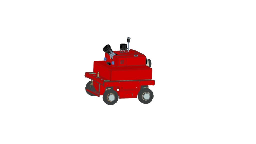 このようにホースの敷設作業だけでなく、搭載ユニットを載せ替えることで様々な作業を行うことが出来る自律追従型 多目的消火作業支援 全輪駆動車であります。
