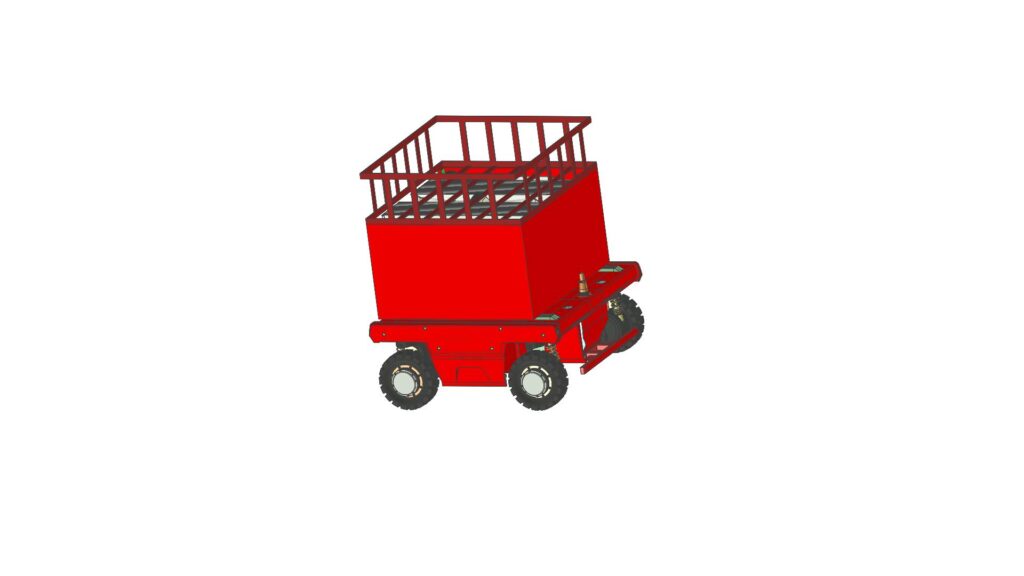 車台に自律追従型全輪駆動車を使用しているため、舗装面での走行性能に優れている上に不整地での走行にも優れています。また操舵装置がなく車輪の回転で方向を変えるため非常に小回りが利きます。走行は自律追従型のため人が車両に触れることなく操作ができるので安全性に優れています。