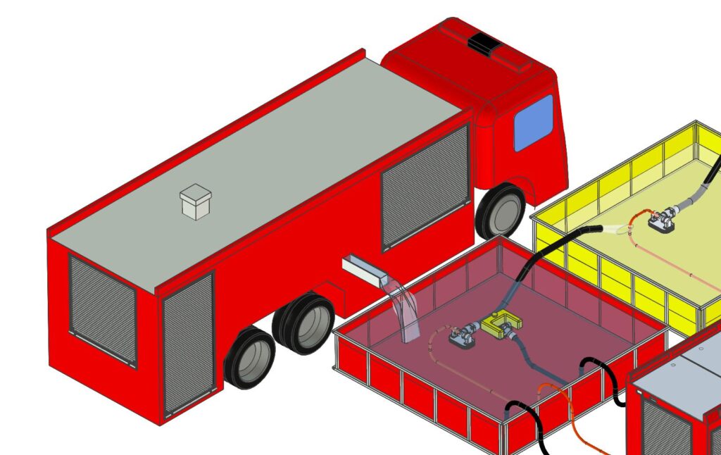 この林野火災消火システムには大容量の水タンク車が必要とされます。